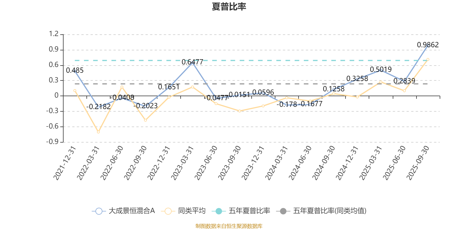 截至9月30日,基金近三年夏普比率为0.9434,位于同类可比基金44/518。
