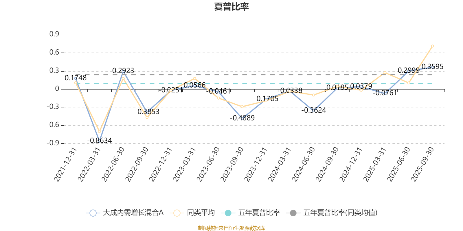 截至9月30日,基金近三年夏普比率为0.1329,位于同类可比基金465/518。