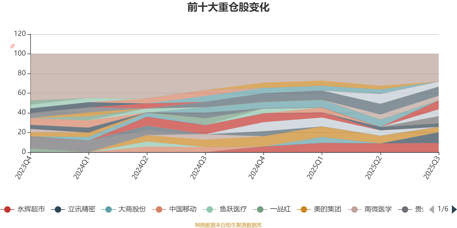该基金持股集中度较高。截至2025年三季度末,基金十大重仓股分别是立讯精密、永辉超市、百亚股份、立华股份、上海新阳、恩华药业、美的集团、泰恩康、江淮汽车、小商品城。