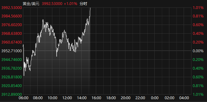 国际现货黄金午后震荡上行 逼近4000美元/盎司关口