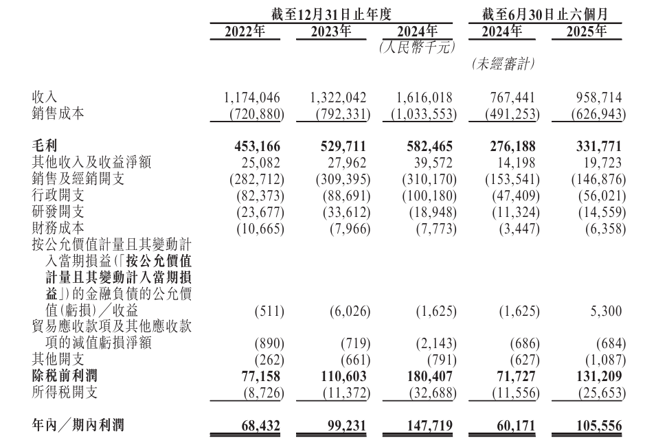 报告期(2022年至2024年、2025年上半年),溜溜果园分别实现营收约11.74亿元、13.22亿元、16.16亿元、9.59亿元;期内利润分别约为6843.2万元、9923.1万元、1.48亿元、1.06亿元。