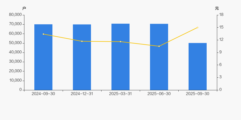 2024年9月30日至今,公司股东户数显著下降,区间跌幅为28.44%。2024年9月30日至2025年9月30日区间股价上涨11.88%。