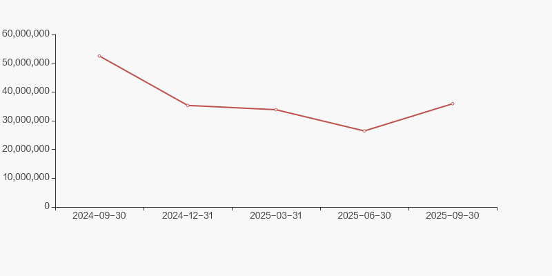 桐昆股份2025年10月30日在三季度报告中披露,截至2025年9月30日公司股东户数为5.01万户,较上期(2025年6月30日)减少2.04万户,减幅为28.96%。