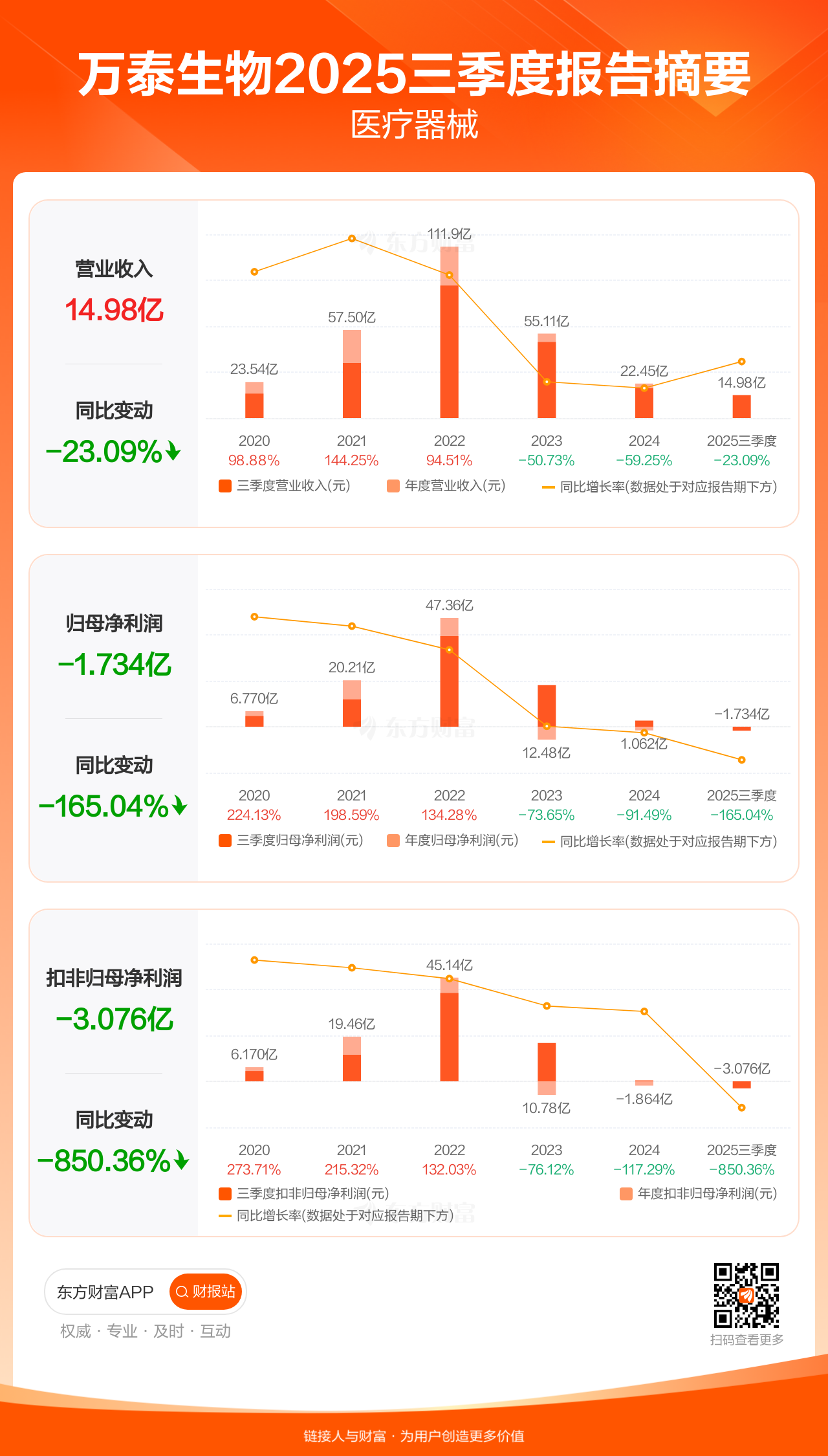 图解财报:万泰生物前三季归母净利润-1.73亿元,上年同期2.67亿元