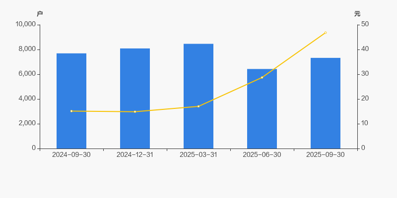 2024年9月30日至今,公司股东户数有所下降,区间跌幅为4.75%。2024年9月30日至2025年9月30日区间股价上涨209.73%。