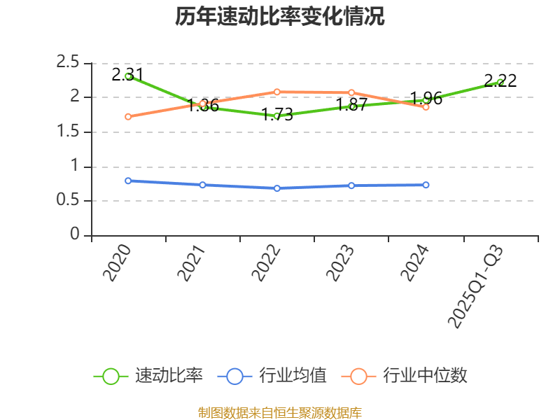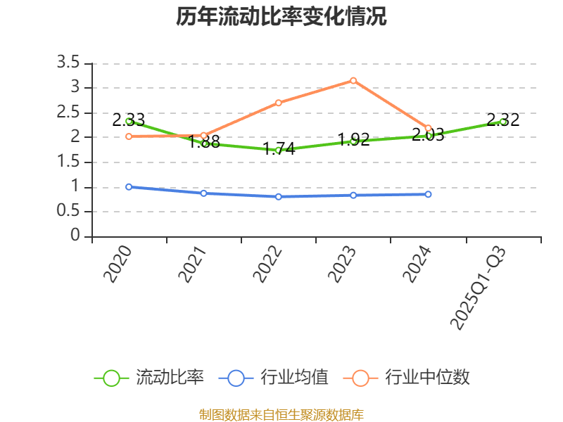 2025年前三季度,公司流动比率为2.32,速动比率为2.22。