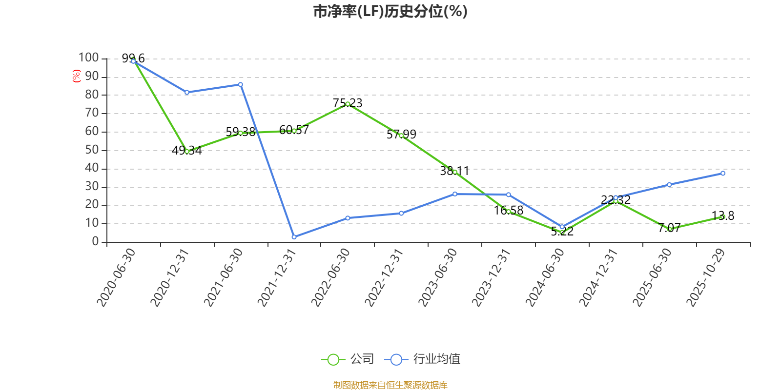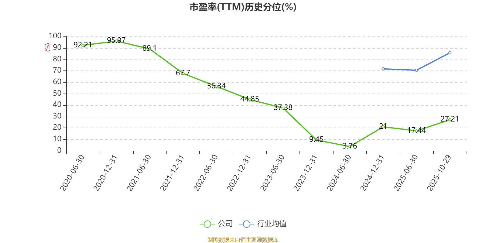 市盈率、市净率为负时,不显示当期分位数,会导致折线图中断。