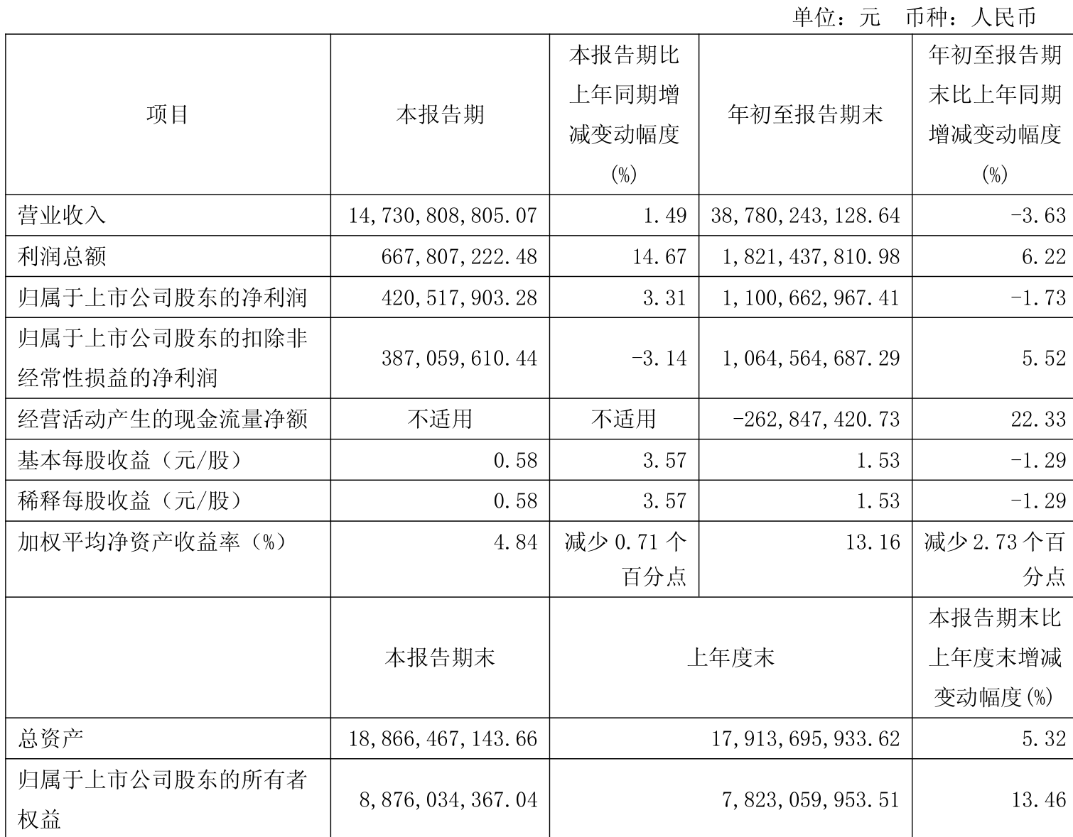 盈利能力方面, 2025年前三季度公司加权平均净资产收益率为13.16%,同比下降2.73个百分点。公司2025年前三季度投入资本回报率为11.89%,较上年同期下降2.41个百分点。