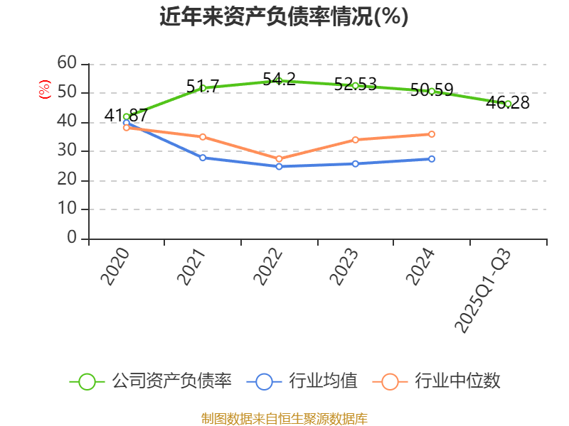 负债重大变化方面,截至2025年三季度末,公司应付票据及应付账款较上年末减少25.12%,占公司总资产比重下降5.55个百分点;合同负债较上年末减少18.63%,占公司总资产比重下降2.72个百分点;长期借款占公司总资产的1.56%,上年末为0;长期应付款合计较上年末增加41.98%,占公司总资产比重上升1.52个百分点。