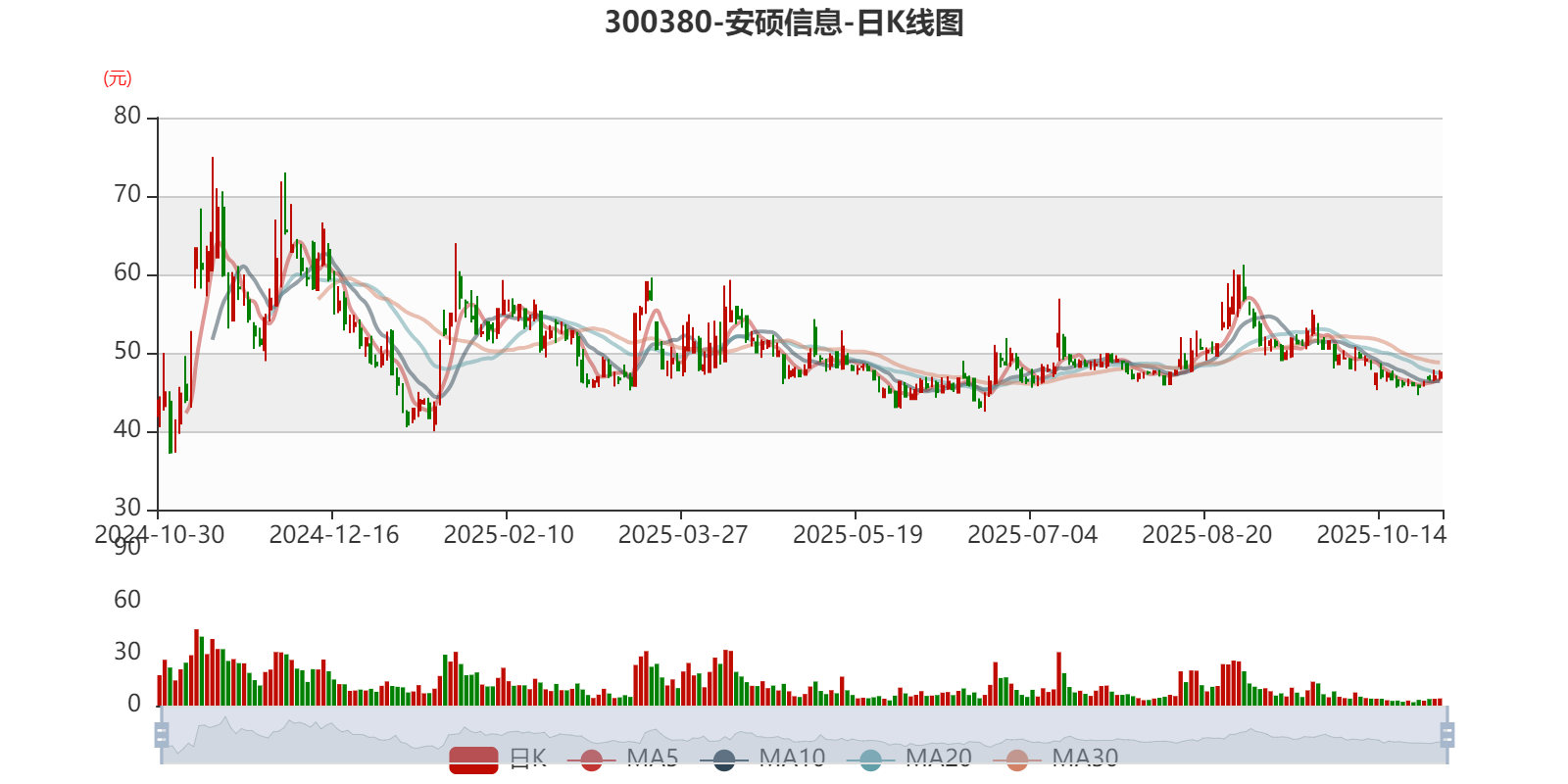 以10月29日收盘价计算,安硕信息目前市盈率(TTM)约为283.39倍,市净率(LF)约16.99倍,市销率(TTM)约6.25倍。