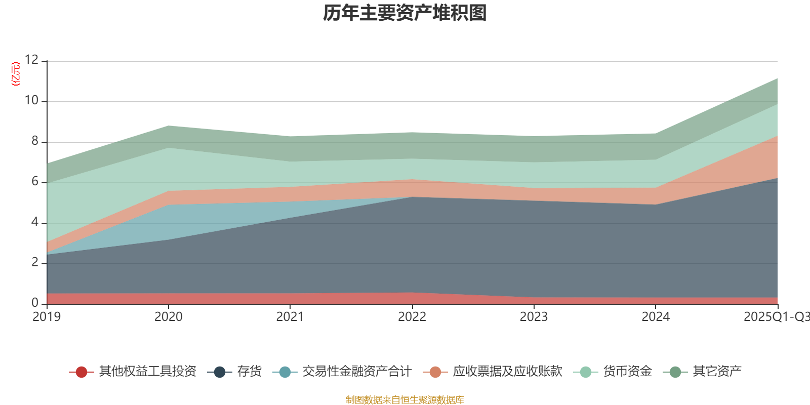 资产重大变化方面,截至2025年三季度末,公司应收票据及应收账款较上年末增加149.88%,占公司总资产比重上升8.82个百分点;货币资金较上年末增加13.33%,占公司总资产比重下降2.37个百分点;存货较上年末增加28.51%,占公司总资产比重下降1.64个百分点;长期股权投资较上年末减少26.06%,占公司总资产比重下降0.92个百分点。
