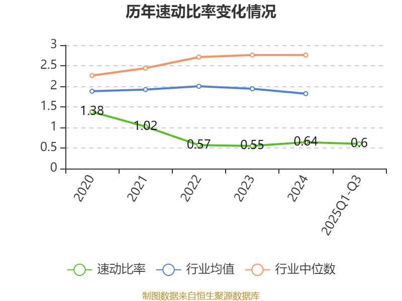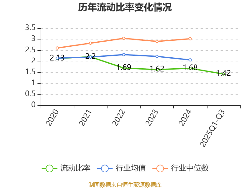 2025年前三季度,公司流动比率为1.42,速动比率为0.6。