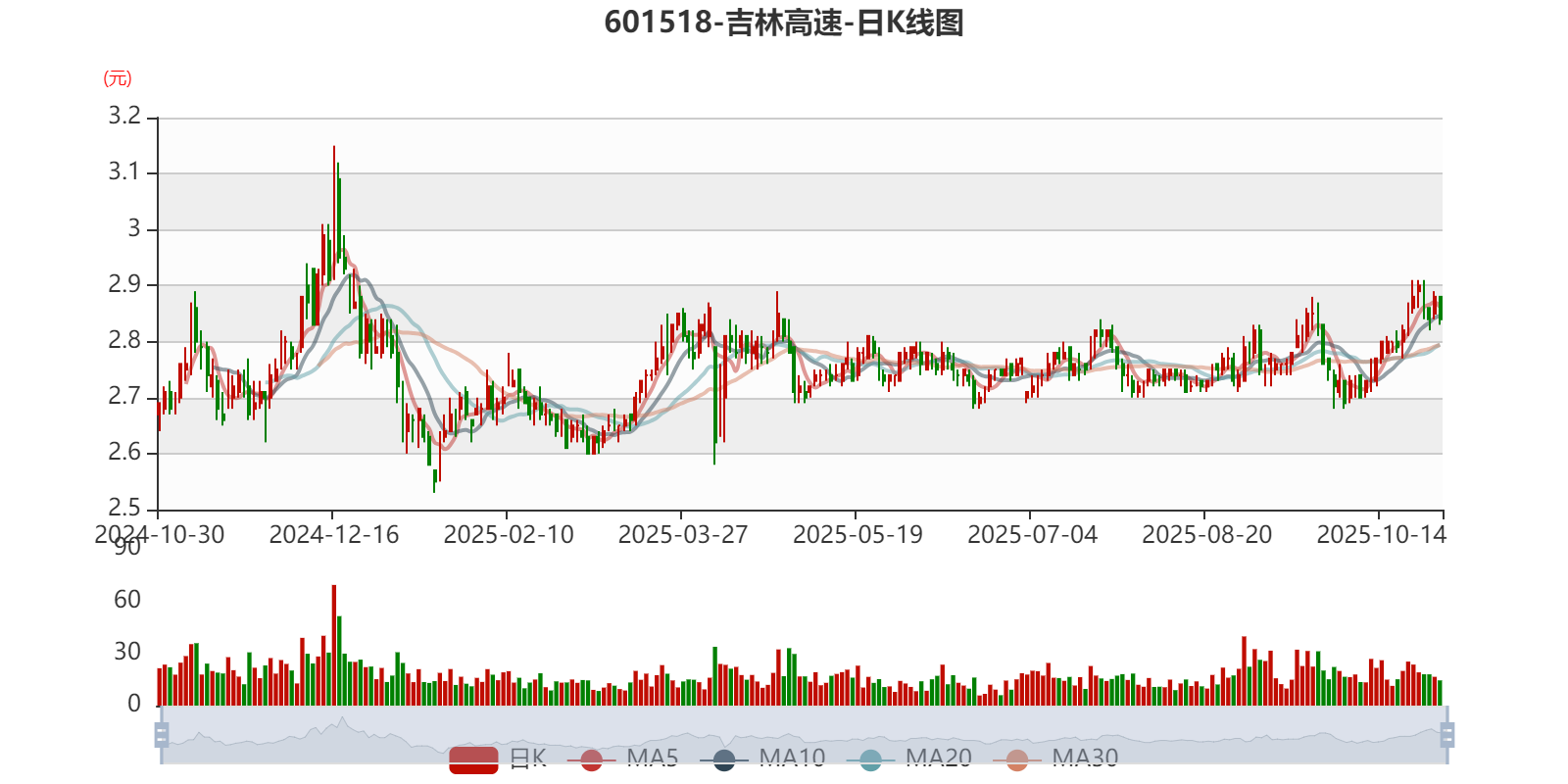 以10月29日收盘价计算,吉林高速目前市盈率(TTM)约为9.85倍,市净率(LF)约0.96倍,市销率(TTM)约3.53倍。