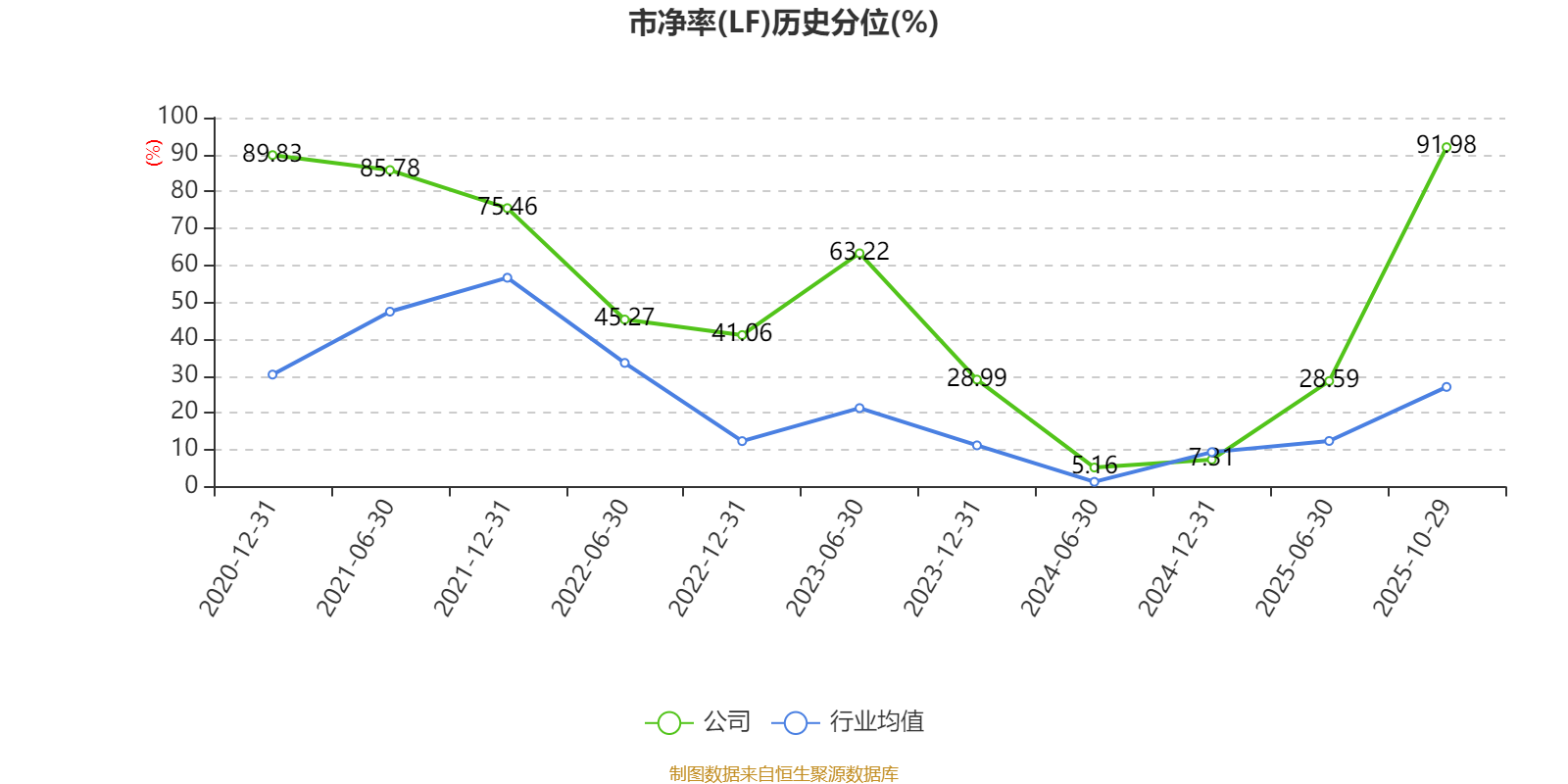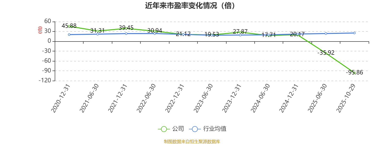 市盈率、市净率为负时,不显示当期分位数,会导致折线图中断。