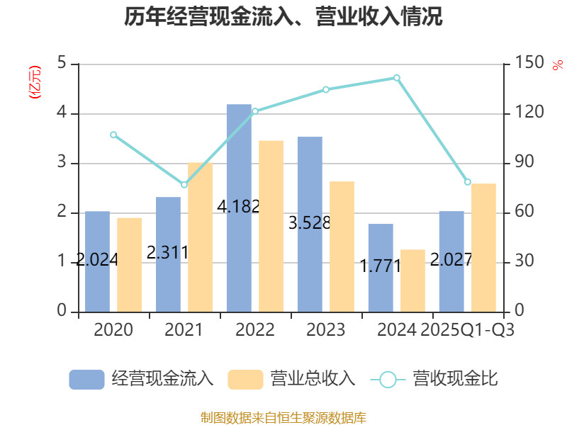 2025年前三季度,公司流动比率为4.87,速动比率为4.22。