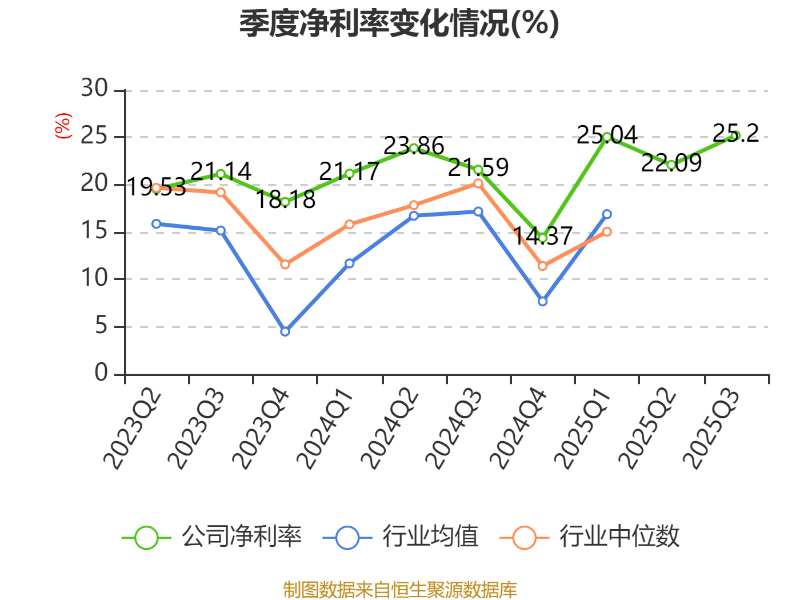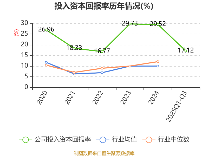 盈利能力方面, 2025年前三季度公司加权平均净资产收益率为17.77%,同比下降9.17个百分点。公司2025年前三季度投入资本回报率为17.12%,较上年同期下降7.43个百分点。