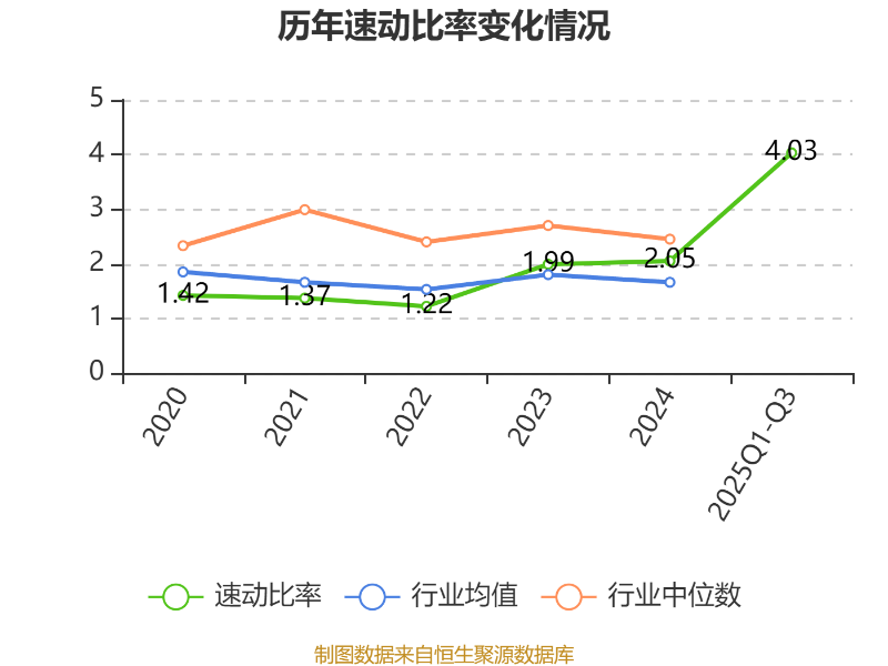 2025年前三季度,公司流动比率为4.5,速动比率为4.03。