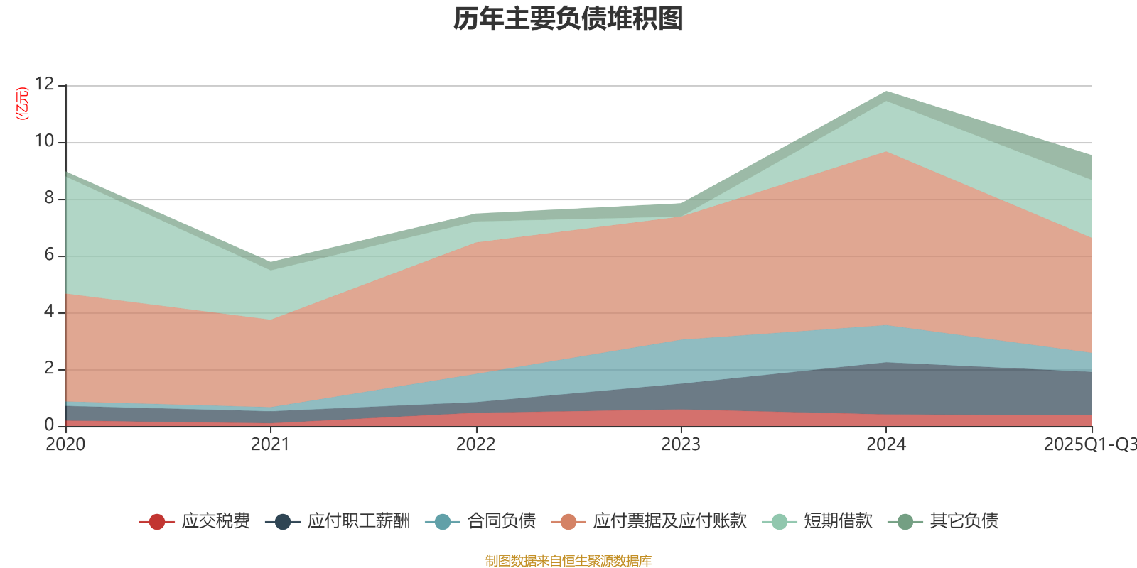 负债重大变化方面,截至2025年三季度末,公司应付票据及应付账款较上年末减少33.75%,占公司总资产比重下降9.62个百分点;合同负债较上年末减少48.61%,占公司总资产比重下降2.49个百分点;应付职工薪酬较上年末减少17%,占公司总资产比重下降2.21个百分点;短期借款较上年末增加14.76%,占公司总资产比重下降0.9个百分点。