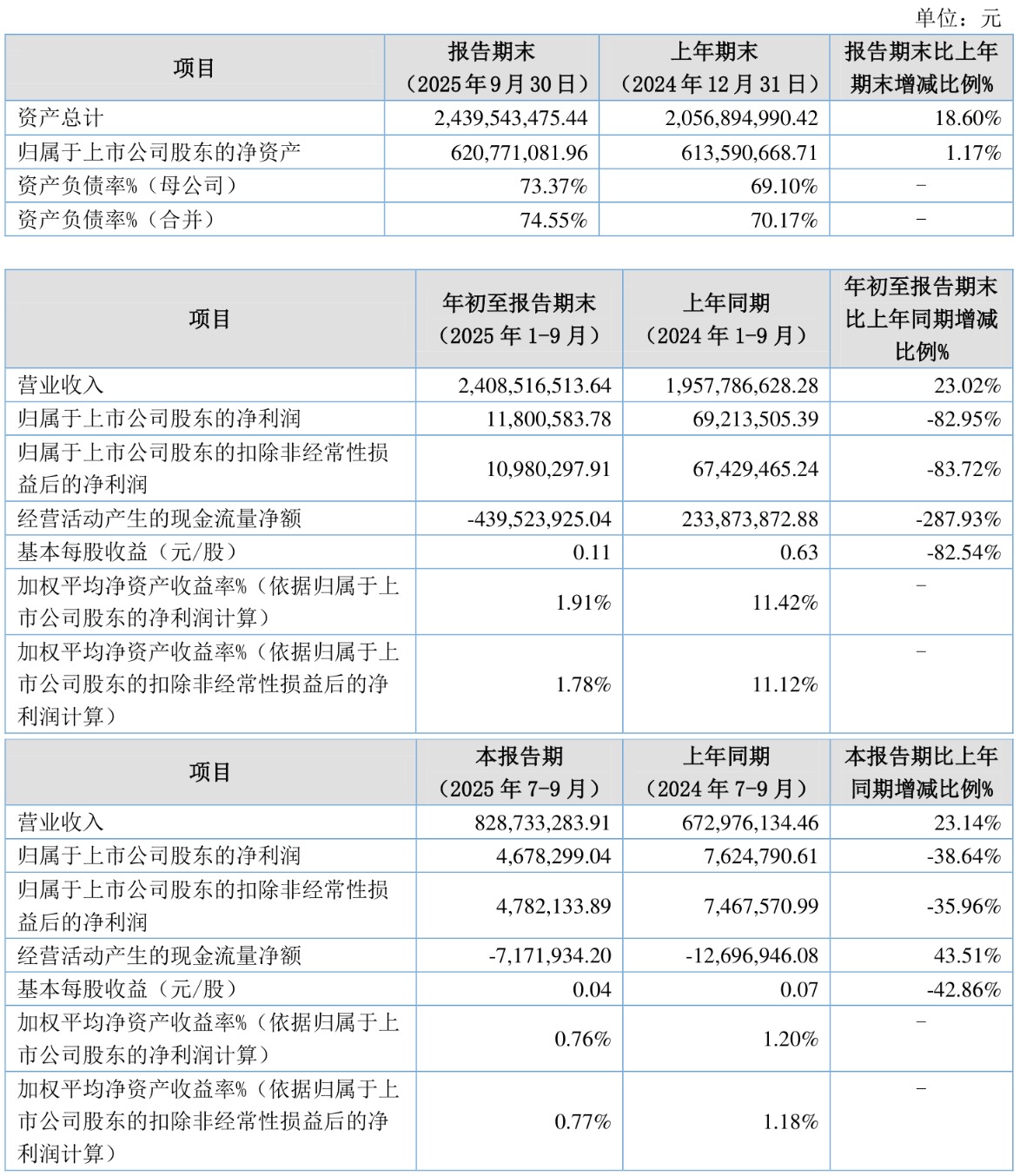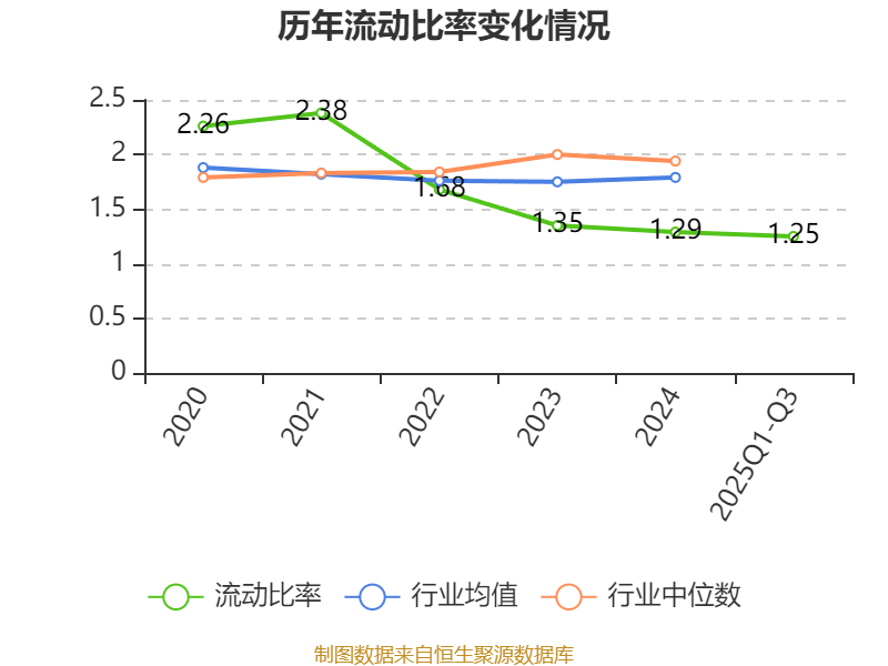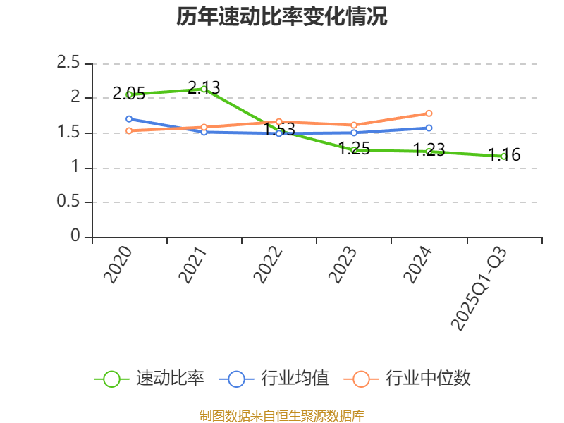 2025年前三季度,公司流动比率为1.25,速动比率为1.16。