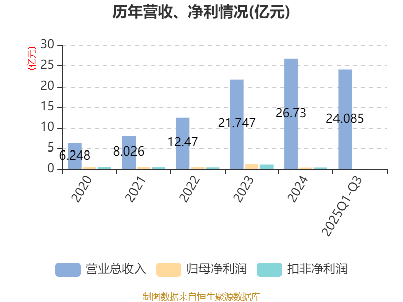 中证智能财讯同享科技(920167)10月29日披露2025年第三季度报告。前三季度公司实现营业总收入24.09亿元,同比增长23.02%;归母净利润1180.06万元,同比下降82.95%;扣非净利润1098.03万元,同比下降83.72%;经营活动产生的现金流量净额为-4.4亿元,上年同期为2.34亿元;报告期内,同享科技基本每股收益为0.11元,加权平均净资产收益率为1.91%。