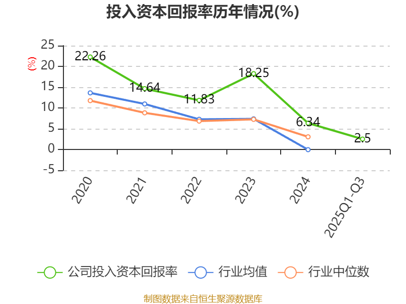 盈利能力方面, 2025年前三季度公司加权平均净资产收益率为1.91%,同比下降9.51个百分点。公司2025年前三季度投入资本回报率为2.5%,较上年同期下降7.3个百分点。