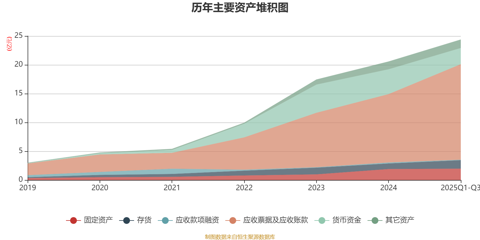 资产重大变化方面,截至2025年三季度末,公司应收票据及应收账款较上年末增加39.75%,占公司总资产比重上升10.29个百分点;货币资金较上年末减少35%,占公司总资产比重下降9.48个百分点;存货较上年末增加51.49%,占公司总资产比重上升1.3个百分点;固定资产较上年末增加3.84%,占公司总资产比重下降1.15个百分点。
