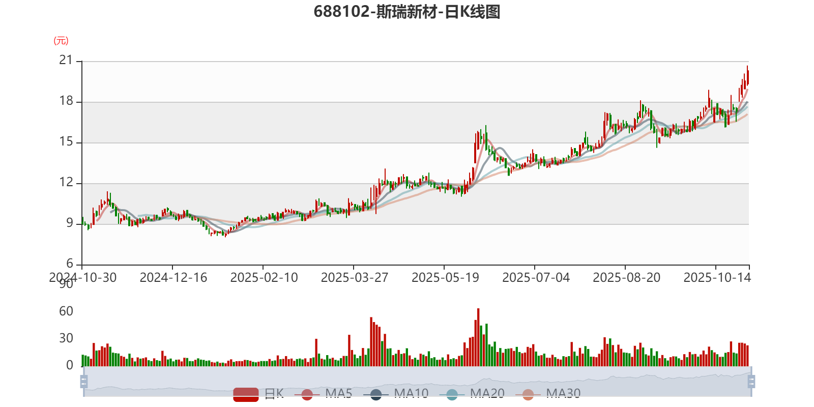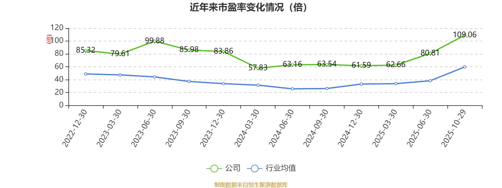 以10月29日收盘价计算,斯瑞新材目前市盈率(TTM)约为109.06倍,市净率(LF)约8.65倍,市销率(TTM)约10.19倍。
