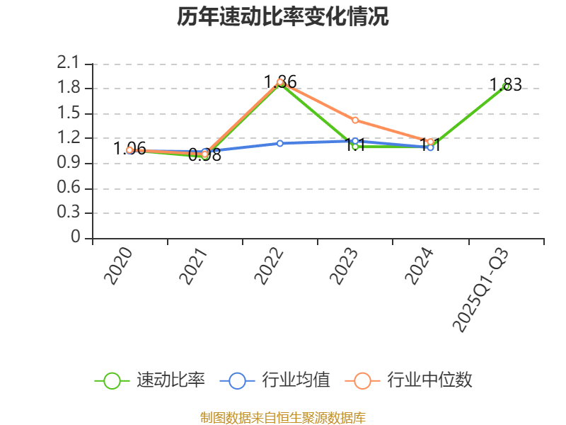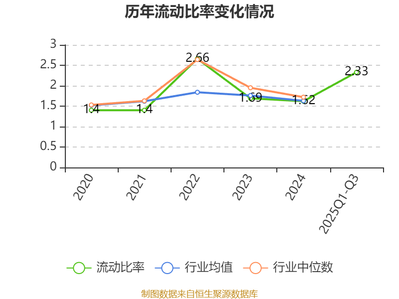 2025年前三季度,公司流动比率为2.33,速动比率为1.83。