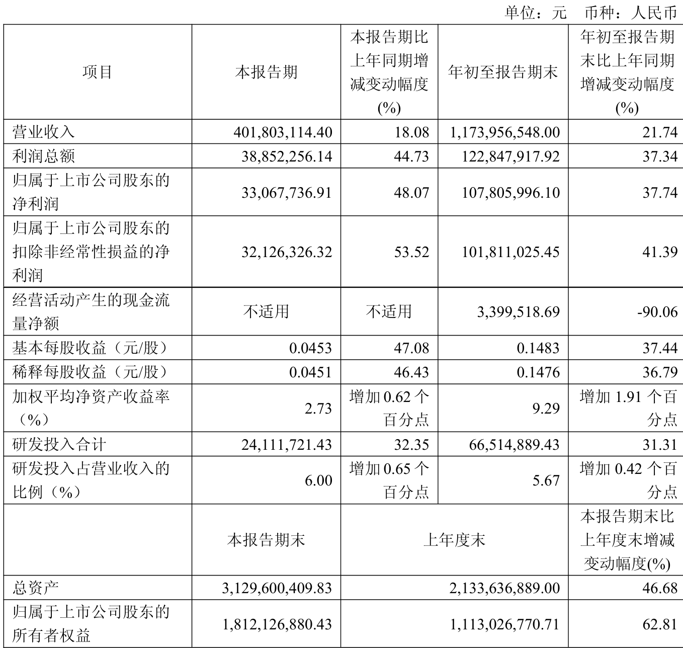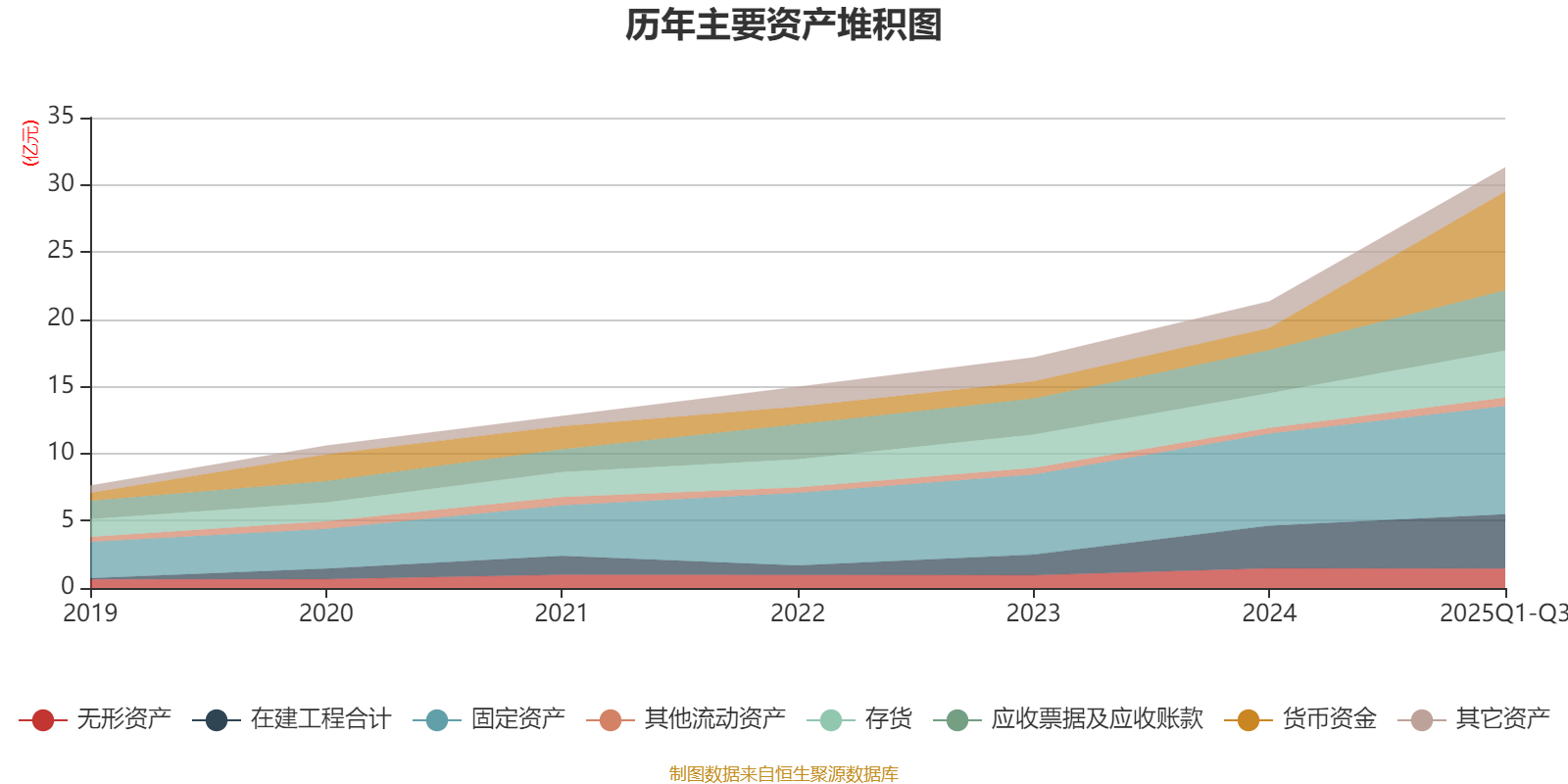 资产重大变化方面,截至2025年三季度末,公司货币资金较上年末增加347.74%,占公司总资产比重上升15.78个百分点;固定资产较上年末增加17.52%,占公司总资产比重下降6.39个百分点;无形资产较上年末减少1.2%,占公司总资产比重下降2.22个百分点;其他非流动资产较上年末减少38.65%,占公司总资产比重下降2.14个百分点。