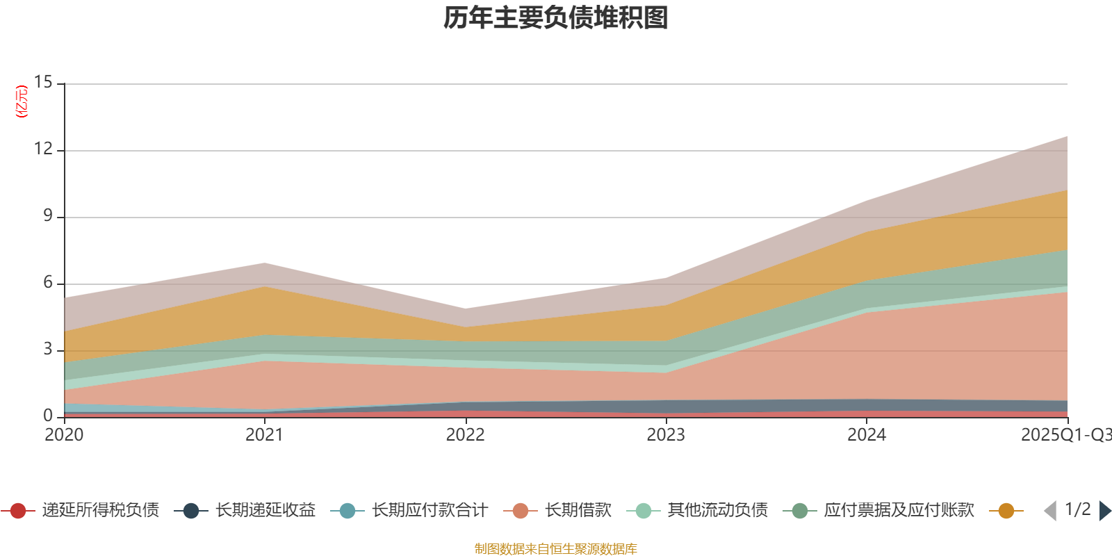 负债重大变化方面,截至2025年三季度末,公司长期借款较上年末增加25.32%,占公司总资产比重下降2.65个百分点;短期借款较上年末增加22.54%,占公司总资产比重下降1.69个百分点;长期递延收益较上年末减少6.17%,占公司总资产比重下降0.89个百分点;应付票据及应付账款较上年末增加32.05%,占公司总资产比重下降0.58个百分点。