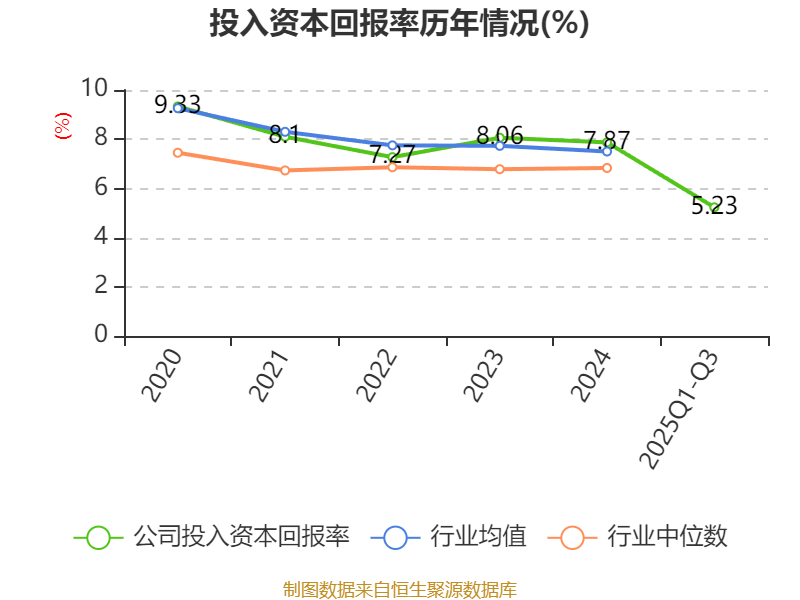 盈利能力方面, 2025年前三季度公司加权平均净资产收益率为9.29%,同比上升1.91个百分点。公司2025年前三季度投入资本回报率为5.23%,较上年同期下降0.23个百分点。