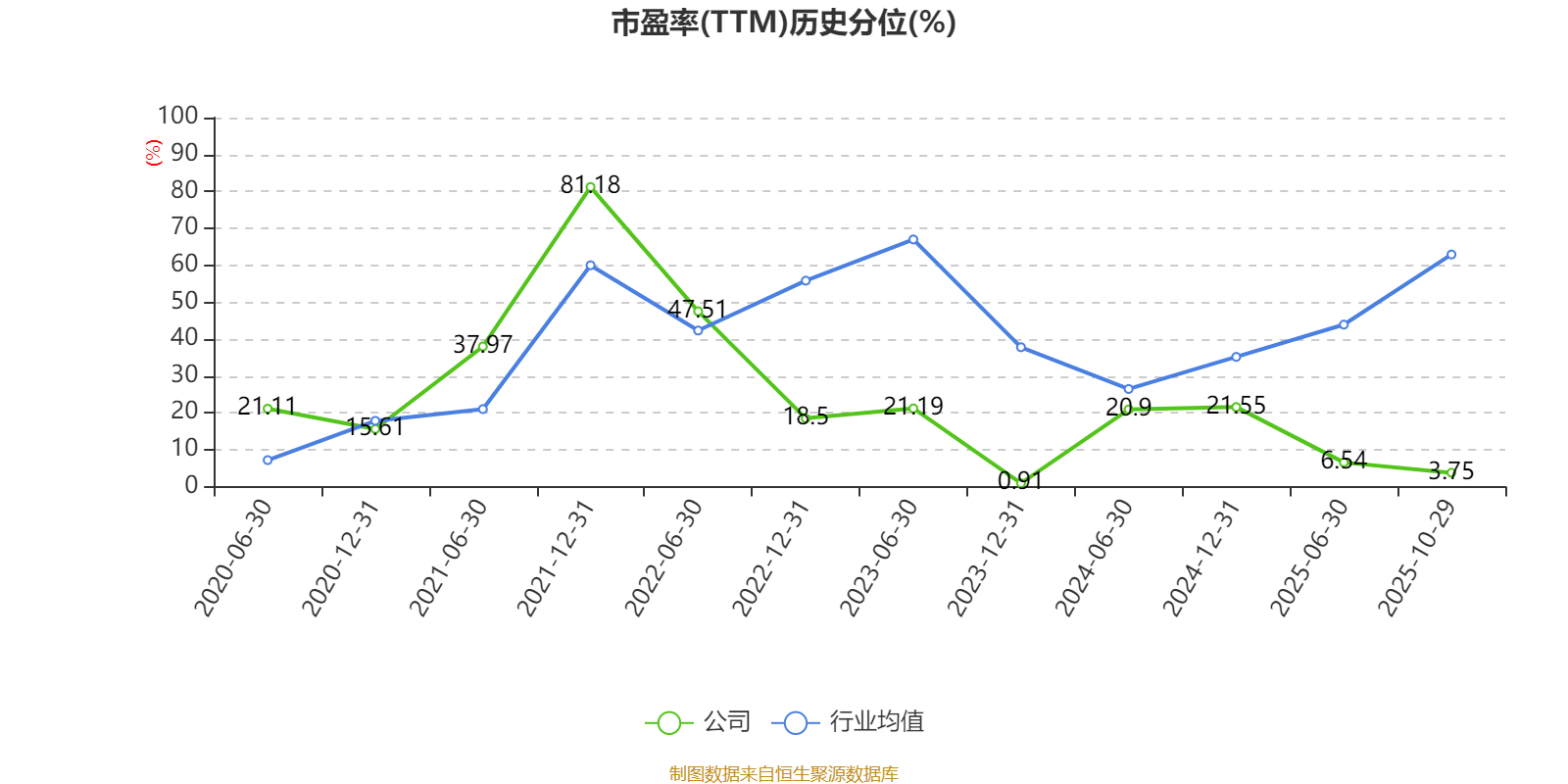 市盈率、市净率为负时,不显示当期分位数,会导致折线图中断。