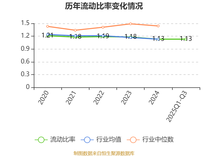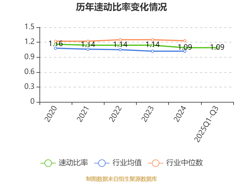 2025年前三季度,公司流动比率为1.13,速动比率为1.09。