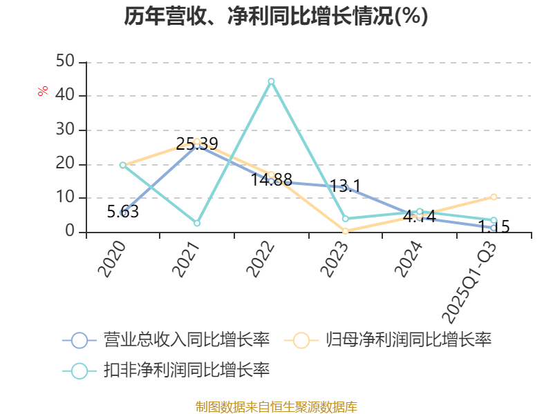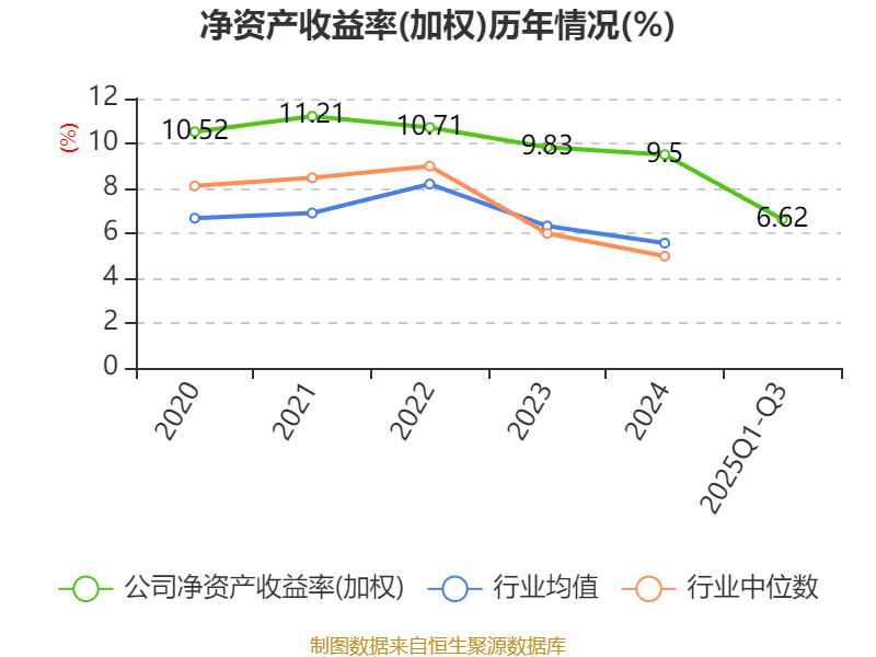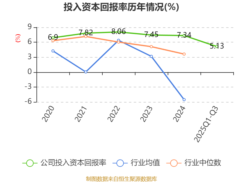 盈利能力方面, 2025年前三季度公司加权平均净资产收益率为6.62%,同比上升0.11个百分点。公司2025年前三季度投入资本回报率为5.13%,较上年同期下降0.03个百分点。