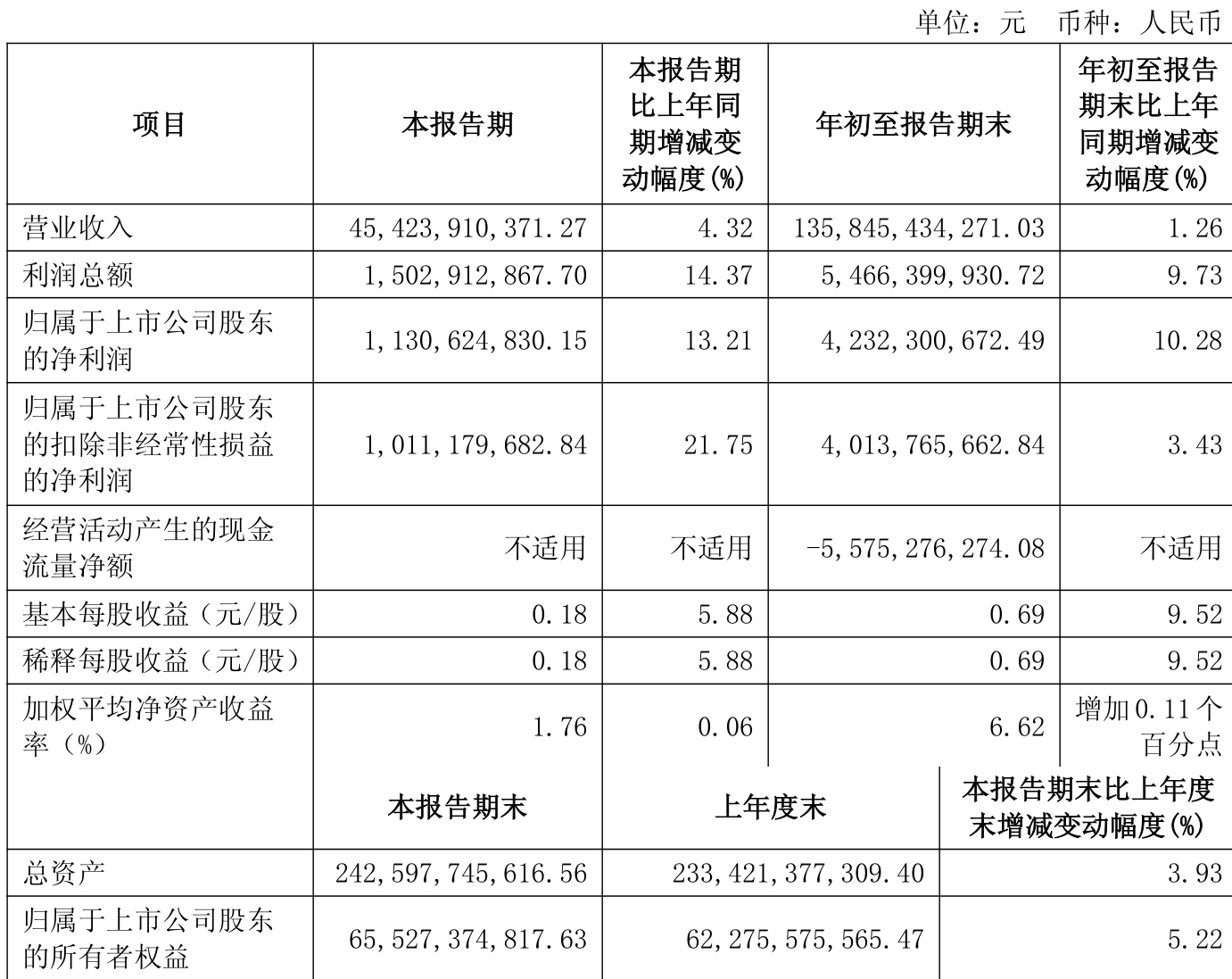 中证智能财讯中国化学(601117)10月30日披露2025年第三季度报告。前三季度公司实现营业总收入1363亿元,同比增长1.15%;归母净利润42.32亿元,同比增长10.28%;扣非净利润40.14亿元,同比增长3.43%;经营活动产生的现金流量净额为-55.75亿元,上年同期为-56.32亿元;报告期内,中国化学基本每股收益为0.69元,加权平均净资产收益率为6.62%。