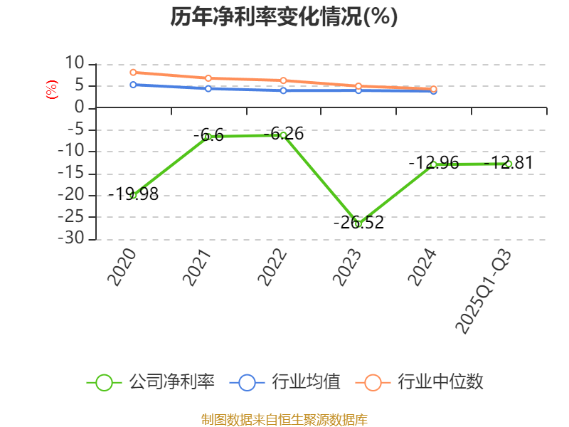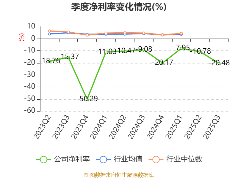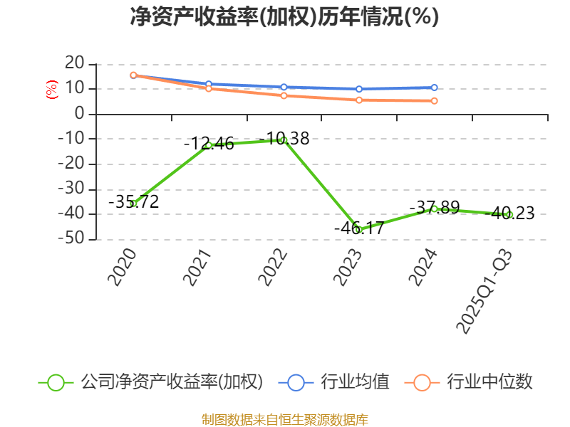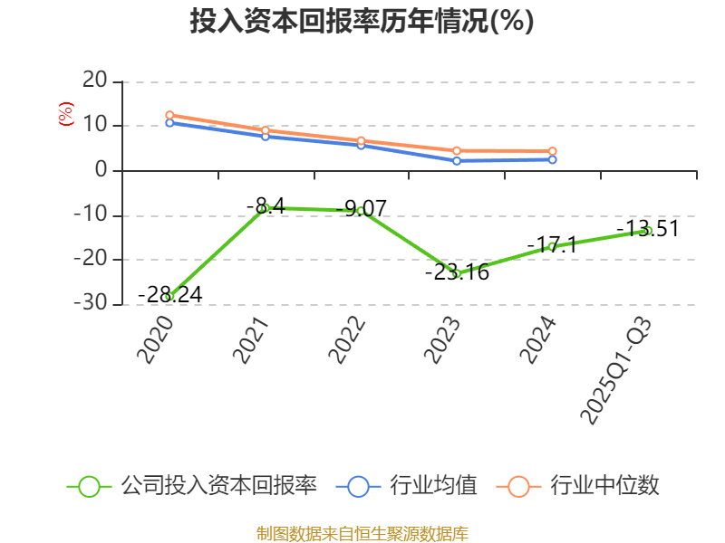 盈利能力方面, 2025年前三季度公司加权平均净资产收益率为-40.23%,同比下降20.09个百分点。公司2025年前三季度投入资本回报率为-13.51%,较上年同期下降3.52个百分点。