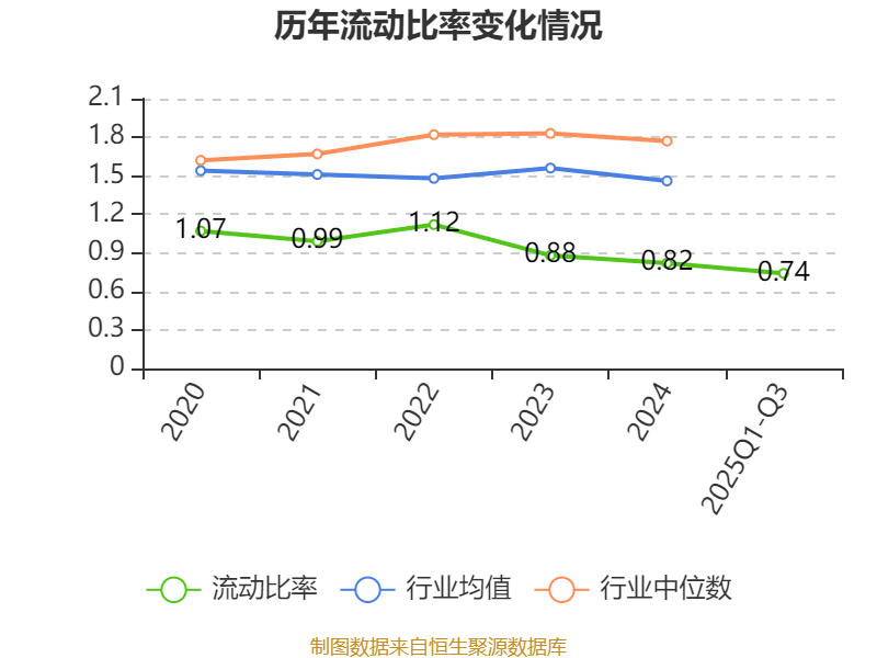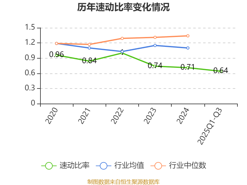 2025年前三季度,公司流动比率为0.74,速动比率为0.64。