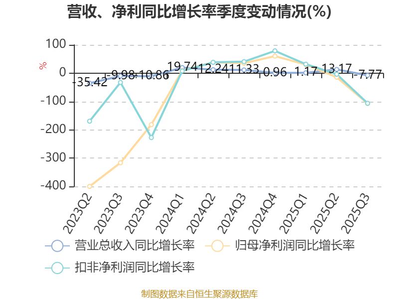 资产重大变化方面,截至2025年三季度末,公司应收票据及应收账款较上年末减少18.05%,占公司总资产比重下降2.51个百分点;货币资金较上年末增加5.98%,占公司总资产比重上升1.8个百分点;递延所得税资产较上年末增加2.06%,占公司总资产比重上升0.98个百分点;应收款项融资较上年末减少99.82%,占公司总资产比重下降0.55个百分点。