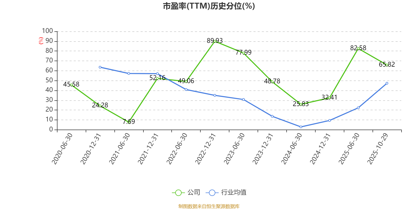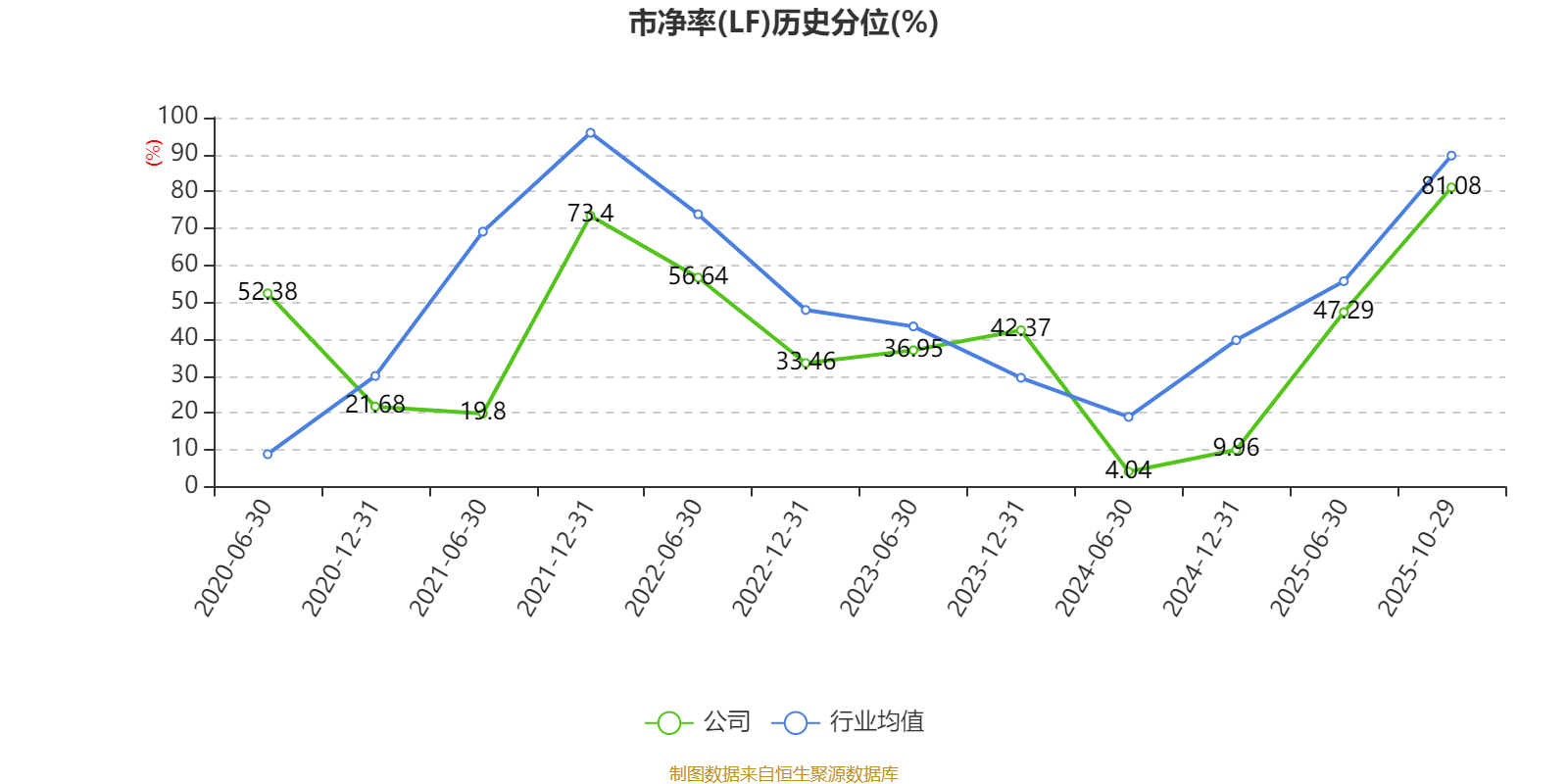 市盈率、市净率为负时,不显示当期分位数,会导致折线图中断。