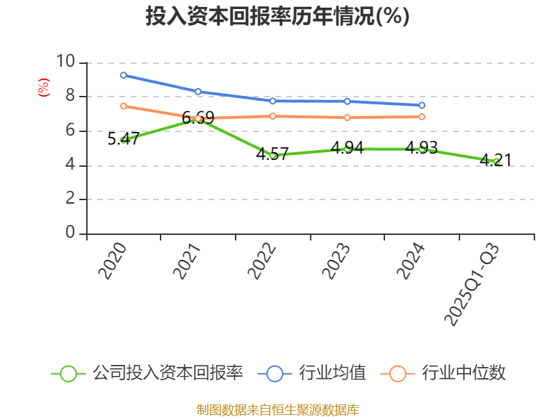 盈利能力方面, 2025年前三季度公司加权平均净资产收益率为5.57%,同比上升1.2个百分点。公司2025年前三季度投入资本回报率为4.21%,较上年同期上升0.49个百分点。