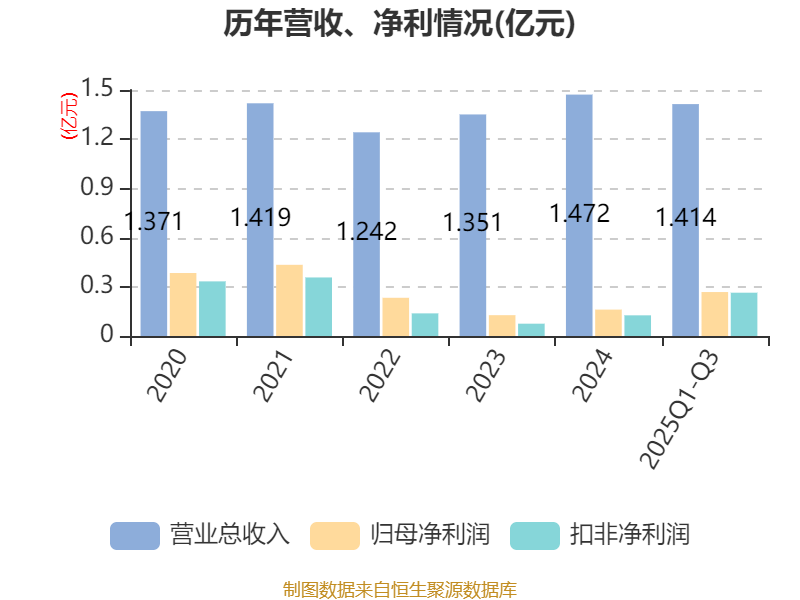 2025年前三季度,公司经营活动现金流净额为2687.38万元,同比增加2695.07万元;筹资活动现金流净额-881.49万元,同比减少3934.83万元;投资活动现金流净额-1727.63万元,上年同期为-2711.67万元。
