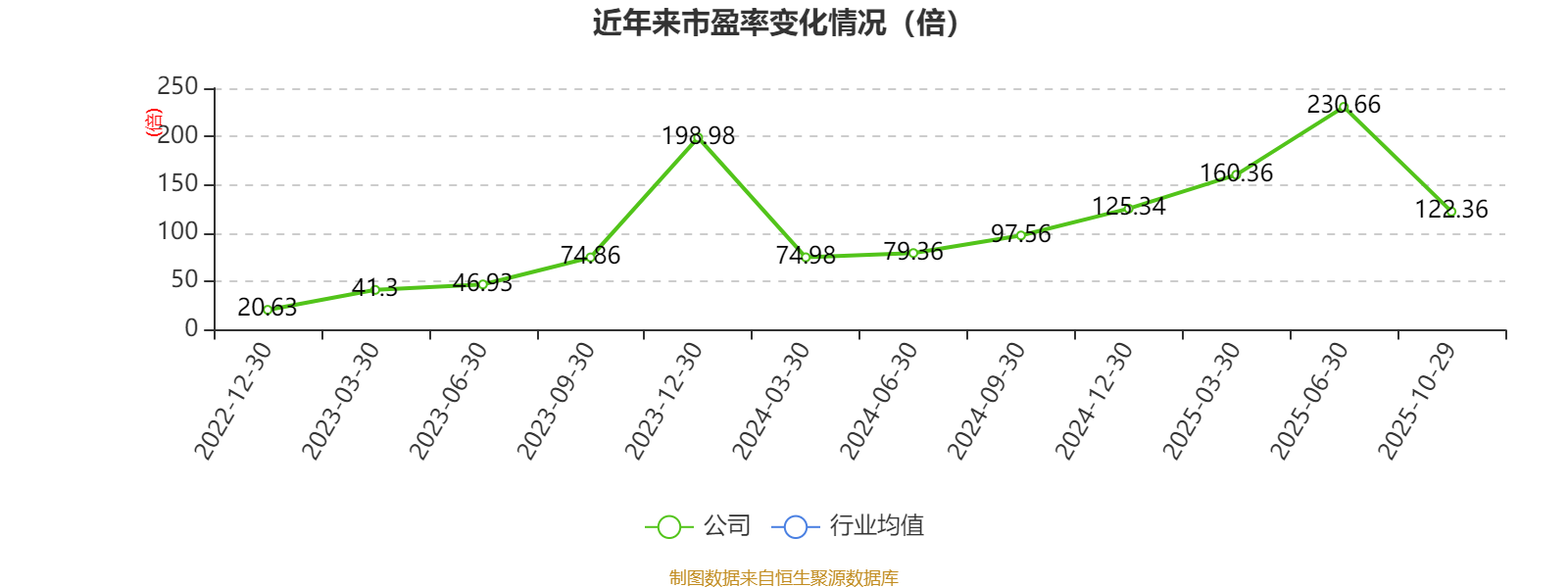 以10月29日收盘价计算,星辰科技目前市盈率(TTM)约为122.36倍,市净率(LF)约9.41倍,市销率(TTM)约19.97倍。