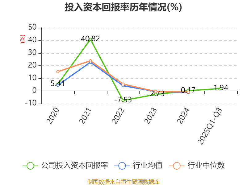 盈利能力方面, 2025年前三季度公司加权平均净资产收益率为1.96%,同比上升6.02个百分点。公司2025年前三季度投入资本回报率为1.94%,较上年同期上升3.02个百分点。