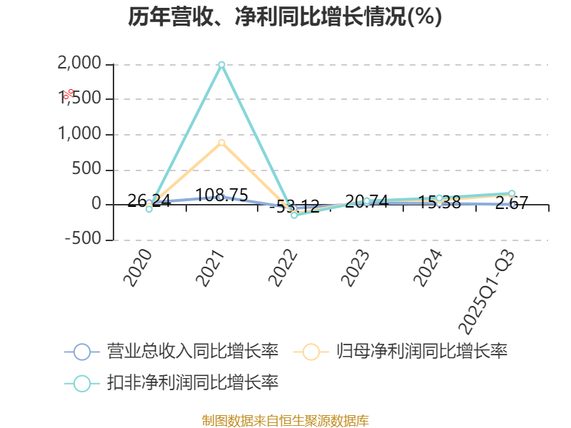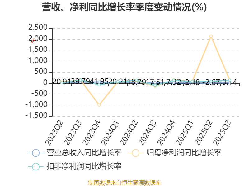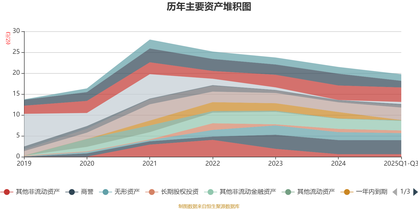 资产重大变化方面,截至2025年三季度末,公司一年内到期的非流动资产较上年末减少97.59%,占公司总资产比重下降6.96个百分点;货币资金较上年末减少43.54%,占公司总资产比重下降5.04个百分点;存货较上年末增加28.44%,占公司总资产比重上升4.31个百分点;交易性金融资产合计较上年末增加9982.86%,占公司总资产比重上升2.54个百分点。