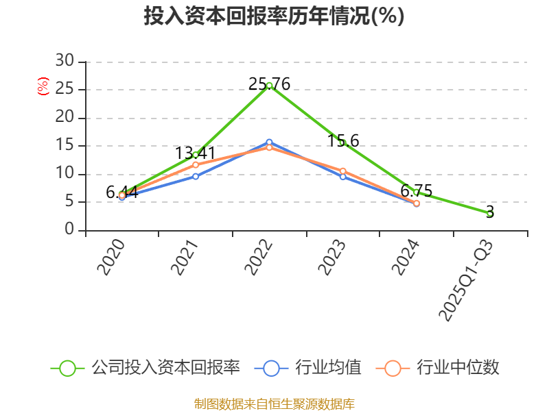 盈利能力方面, 2025年前三季度公司加权平均净资产收益率为3.93%,同比下降3.73个百分点。公司2025年前三季度投入资本回报率为3%,较上年同期下降3.45个百分点。