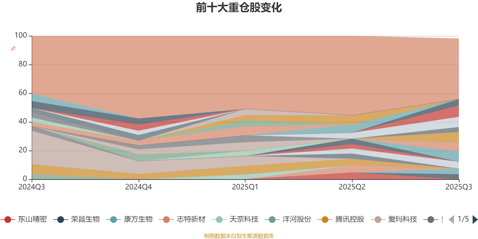 截至2025年三季度末,基金十大重仓股分别是恒瑞医药、药明康德、三生制药、信达生物、百济神州、石药集团、中国生物制药、康方生物、荣昌生物、百利天恒。