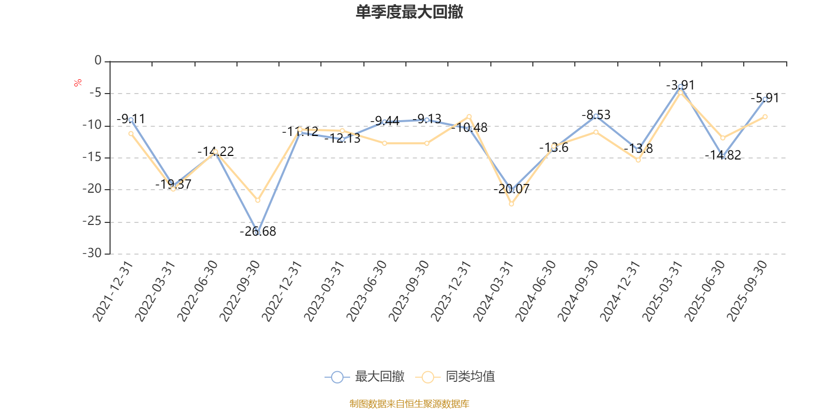 截至10月28日,基金近三年最大回撤为41.18%,同类可比基金排名46/75。单季度最大回撤出现在2022年三季度,为26.68%。