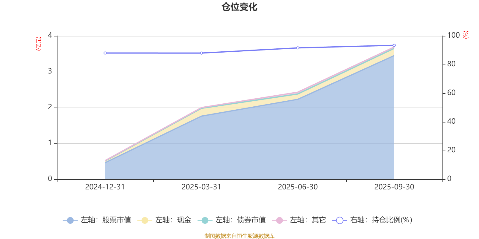 据定期报告数据统计,成立以来平均股票仓位为90.26%,同类平均为86.94%。2025年三季度末基金达到93.42%的最高仓位,2025年一季度末最低,为87.99%。