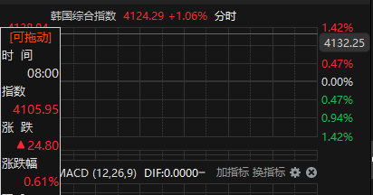 上证报中国证券网讯 10月30日,日韩股市开盘表现分化。日经225指数开盘跌0.31%,报51146.27点;韩国综合指数涨0.61%,报4105.95点。