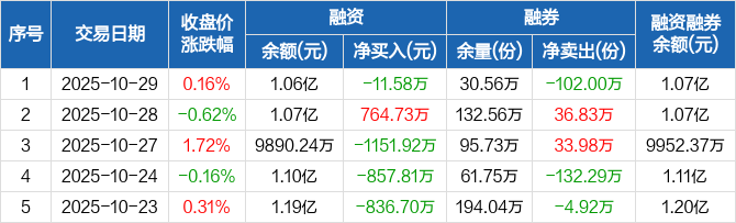 养殖ETF:融资净偿还11.58万元,融资余额1.06亿元(10-29)
